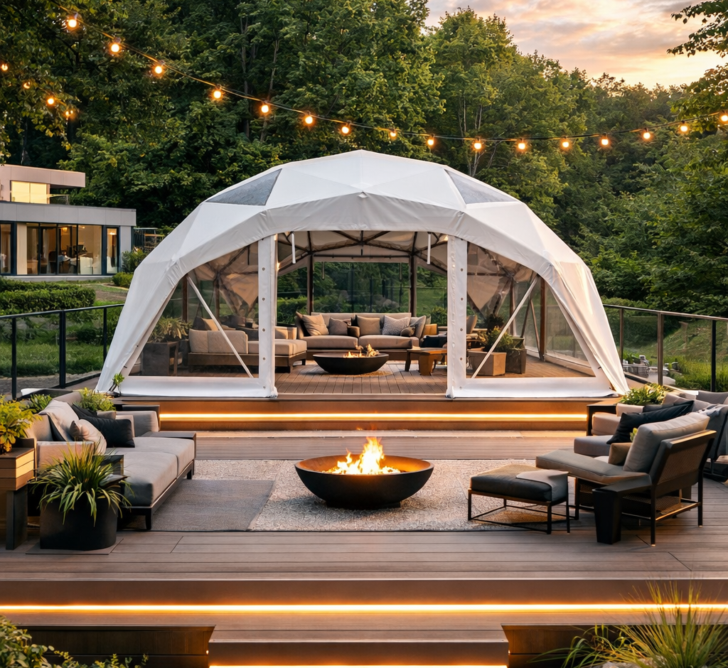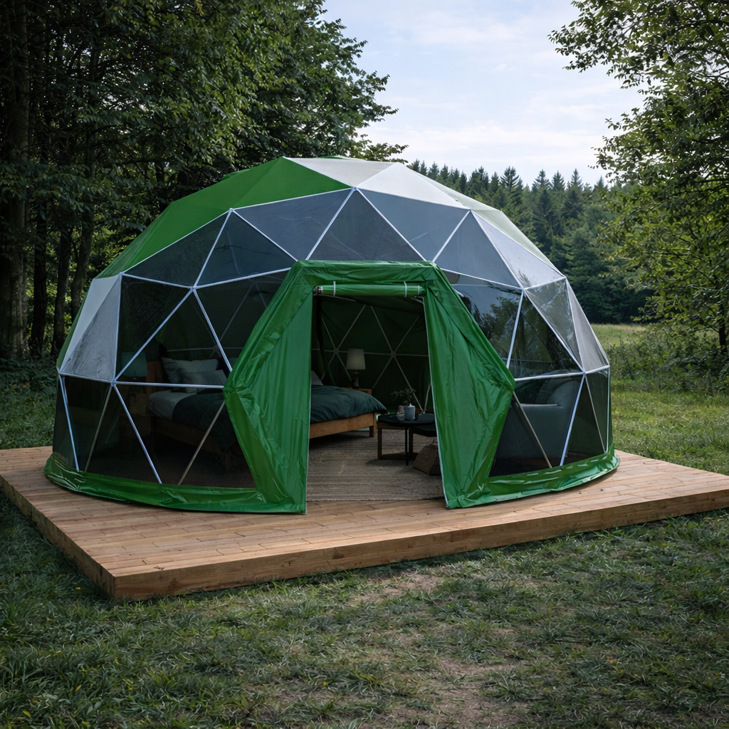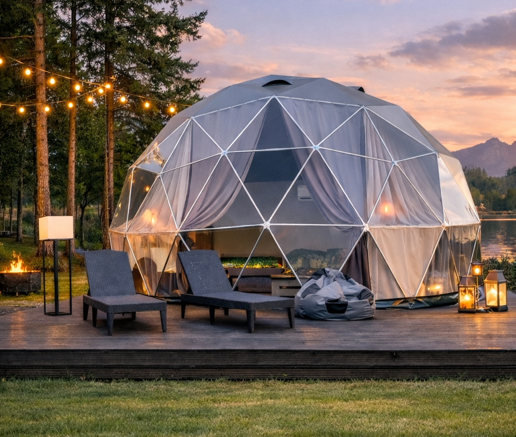 Luxdomes kupoli ir izgatavoti no augstas kvalitātes cinkota pulēta tērauda caurules, pārklājums – PVC materiāls ar blīvumu 580g/m2. Luxdomes kupolus var izmantot kā lielisku risinājumu kempingam, āra terasei, kafejnīcai, kā arī pasākumiem.